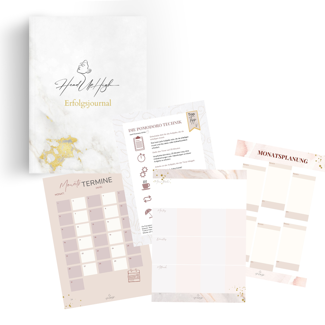 Entdecke das HeadUpHigh Erfolgsjournal – dein Quartalsbegleiter zum Durchbruch! Mit dem HeadUpHigh Erfolgsjournal erreichst und übertriffst du deine Ziele – es ist dein Schlüssel zu unentdecktem Potenzial und unbegrenztem Erfolg! Dieses Journal ist ein Must-Have, weil es maßgeschneidert für deinen Weg ist und dich und dein Business auf jeder Seite unterstützt. Es wurde von Experten mit jahrelanger Erfahrung im Onlinebusiness entwickelt, sodass du von bewährten Strategien und Insider-Wissen profitierst. Das Journal hilft dir bei der strukturierten Planung deiner Jahresziele, Quartalspläne und täglichen Aufgaben und macht deinen Erfolg messbar, indem du deinen Fortschritt Schritt für Schritt verfolgen kannst. Zudem wirst du langfristig mit Tipps, Tricks und kontinuierlicher Unterstützung begleitet. Das Journal im Din A4-Format hat 112 Seiten und kommt in einem hochwertigen Hardcover.